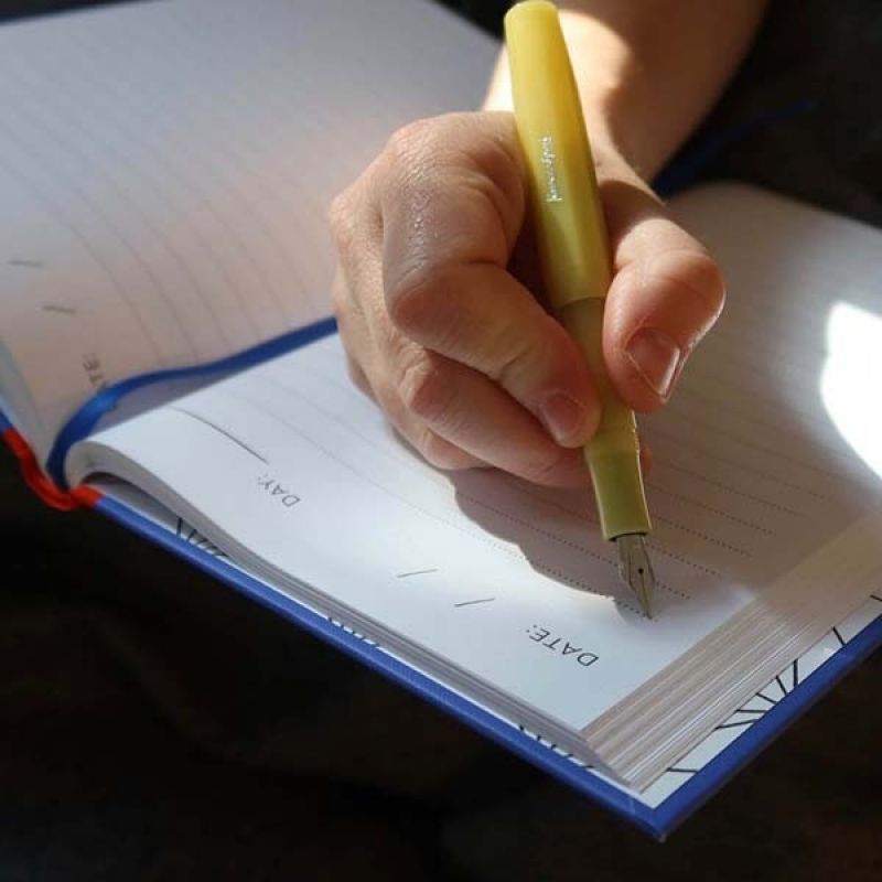 thoughts. This journal is a little bigger than our other books for adults. If you already know it, it’s exactly the same size as our Positive Doodle Diary. It’s also a flat-lay with slightly thicker paper – journaling in this book will simply be a joy! And if you’re looking to add to your Positive Collection, The Positive Free Writing Journal looks stunning when combined with our other books. The spine is bound in a vivid orange fabric with its title in gold and the cover itself is a striking blue embossed with the message, I write so I can hear myself think. The perfect inspiration for all you leave on its pages. We’re ALL about journaling at The Positive Planner. Each one of our books includes daily journaling entries, but from listening to you we know that sometimes you just want that little bit more space to let your pen flow. So, we listened, and here’s that space for you! Additional Information • Weight: 0.725 kg • Dimensions: 24.5 × 17.5 × 2 cm • Pages: 280 • Paper: FSC 120gsm |