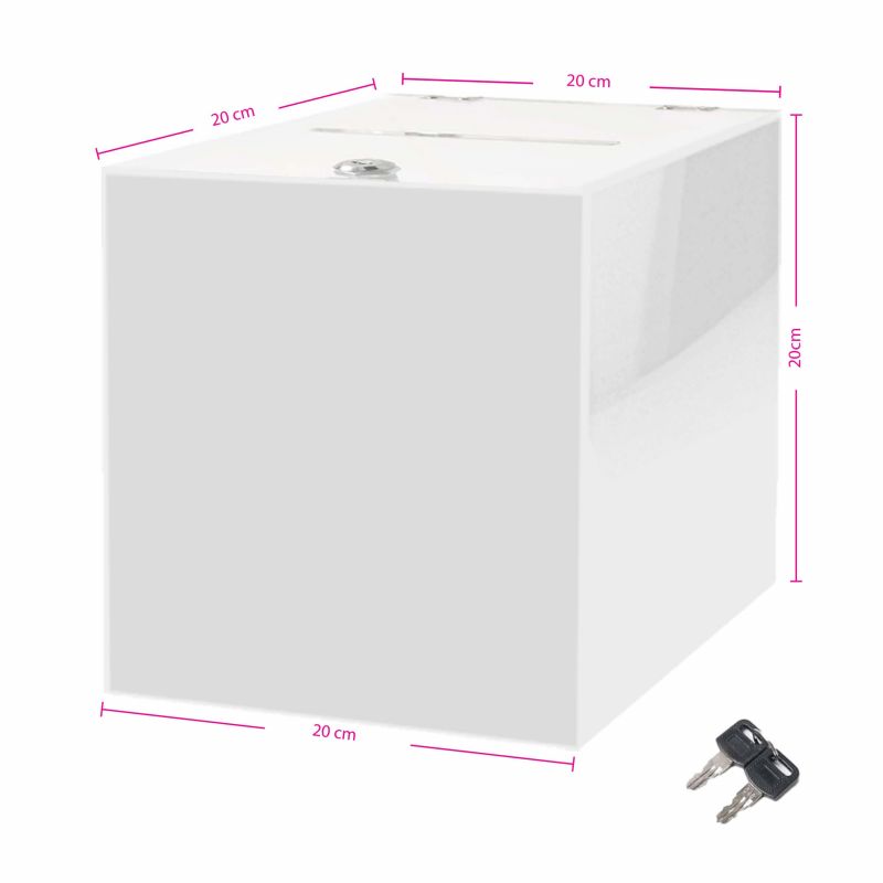 Keep your collections, charity funds, or contest entries secure and organized with the White Acrylic Donation Box with Lock (20 cm). Crafted from high-quality white acrylic, this durable and elegant donation box offers a professional and clean appearance, making it ideal for charity drives, raffle events, voting, feedback collection, and retail counters.