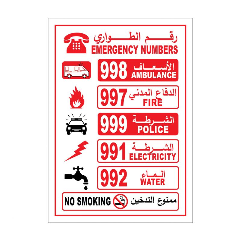 Keep your facility safety compliant and prepared with this practical and reliable UAE Emergency Numbers Sign Sticker Set — a must-have for any responsible environment.