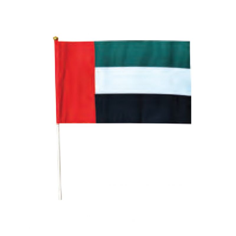 UAE National flag, made of high-quality fabric with a smooth wooden stick handle and a classy golden top.Bright and clear, this wooden handled flag can stand out anywhere. Our National flag is our Pride. Show your country's pride while holding this majestic UAE hand flag. It is your perfect companion for the Olympics, world cup matches,and other national events. It makes the perfect gift for your friends and family who are proud to be Emirati. This UAE national day flag is also a great choice for decorating during national days and patriotic celebrations.