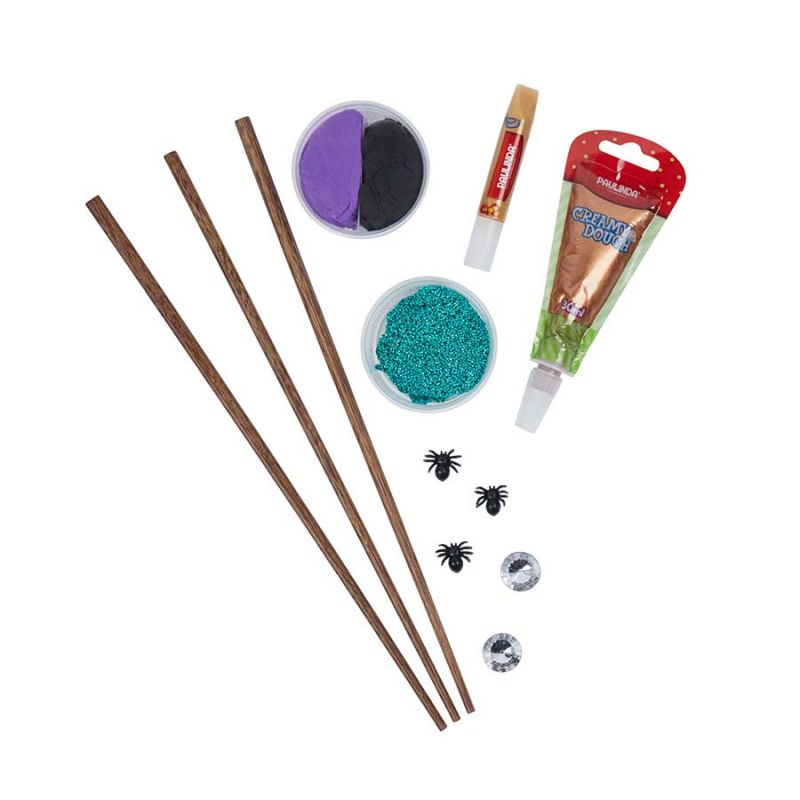 Create your very own magical, mystical wands using modelling clay, pearl beads, jewels and spiders. The perfect kit for halloween or any spooktastic party! Step by step instrucitons included.