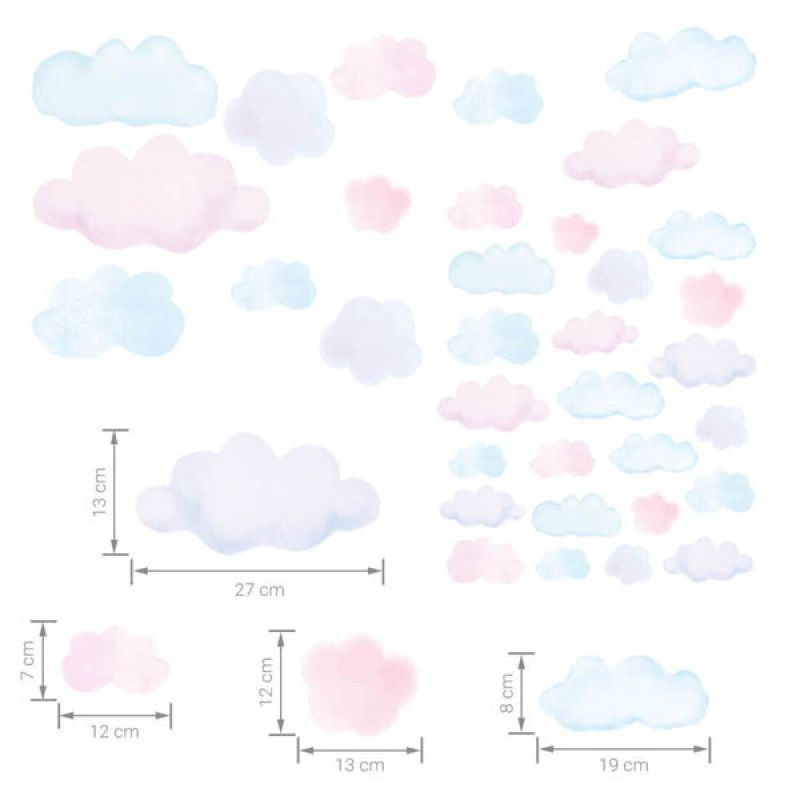 Watercolour Rainbow Clouds - set of 38 wall stickers